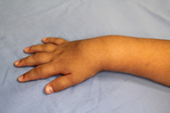 4歳以前に発症する、皮疹(紅潮を伴う充実性丘疹)、関節症状(腱鞘炎)、眼症状(全眼球性ぶどう膜炎)を3主徴とし、組織学的には非乾酪性類上皮細胞肉芽腫、巨細胞性肉芽腫を特徴とする。成人のサルコイドーシスに特徴的とされる肺門部リンパ腫脹は認めない。
